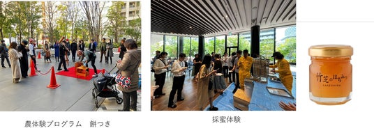 都内では機会を得にくい田植え・稲刈り・餅つきといった農体験の参加型プログラムや、採蜜体験、採れたてのハチミツの試食やミツロウを使ったアロマキャンドル作りといったワークショップも実施しています。
