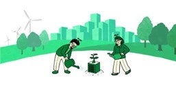 4つのテーマの一つ「地球にやさしい会社へ」として、再エネ電力への切り替えによるRE100の早期達成、既存オフィスビルでのZEB認証取得、ビル屋上での芋緑化による空調効率化等、環境に配慮した多数の取り組みを通して、サステナブル社会への貢献などを実施しています。