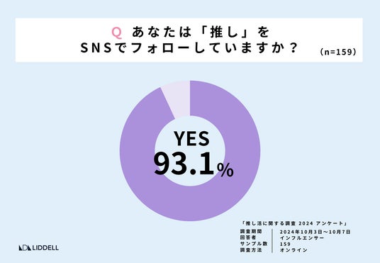「推し」をSNSでフォローしていますか?という質問には 93.1%が「YES」と回答しました。「NO」と回答した人の理由として、アニメキャラクターや海外の女優、スポーツ選手など、SNSアカウントが無いことが理由としてあげられました。