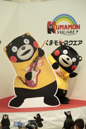 続いて、くまモンスクエアオープン6周年を記念して作成されたスタンドパネルの除幕式では、くまモンが巨大なクラッカーを鳴らすと同時に、来賓の熊本県庁くまモングループ浦田課長が除幕すると、くまモンが「ロック」らしくギターを弾いている写真パネルが登場。会場からは「かっこいい!」と歓声が飛びました。