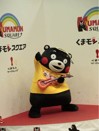 お客様参加型の抽選会(6周年チャレンジ)終了後、くまモンはギターを抱えて「くまモンスクエアのテーマ~ロックバージョン」を初披露。