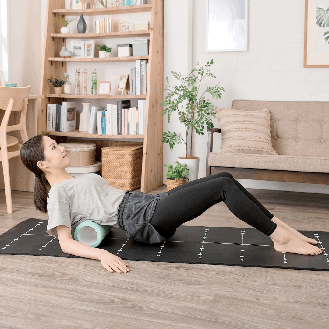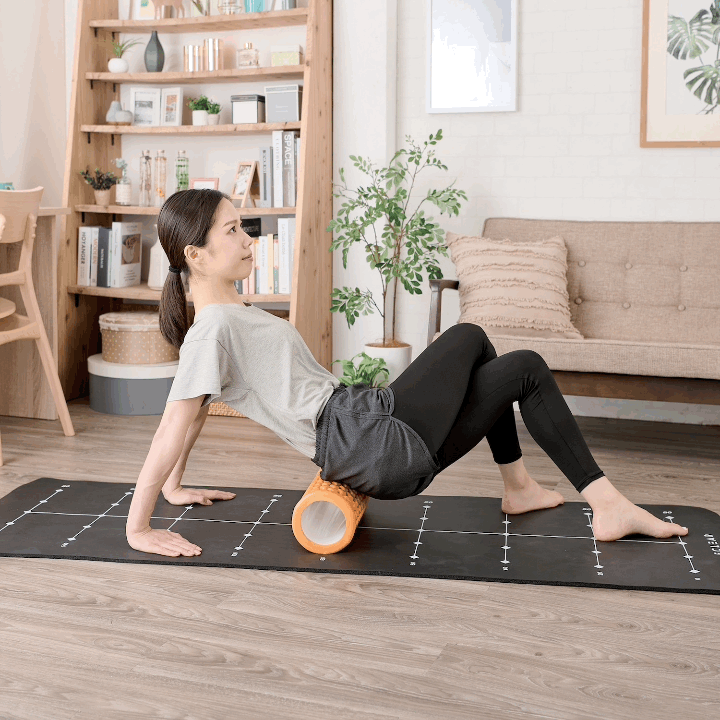 突起面は指圧のようにしっかりとコリをほぐすことができ、フラット面は広い面を使って手のひらで押すようにストレッチができます。2種類の面を使い分けて、日々変化する体の状態に合わせてストレッチができます。両サイドのガイドリングで、どちらの面が床に接地していてもスムーズに回転させることができます。極厚スポンジを使用しているので、柔らかな感触です。