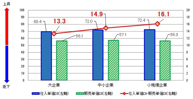 規模別:3カ月ぶりに全規模が改善したものの、原材料高は下押し要因に