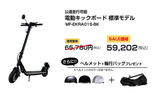 【公道走行・レジャー両用】安全装備を強化したエレクトリックキックボード MF-EKRA01S-BK SALE価格59,202円 ← 通常価格65,780円(税込)