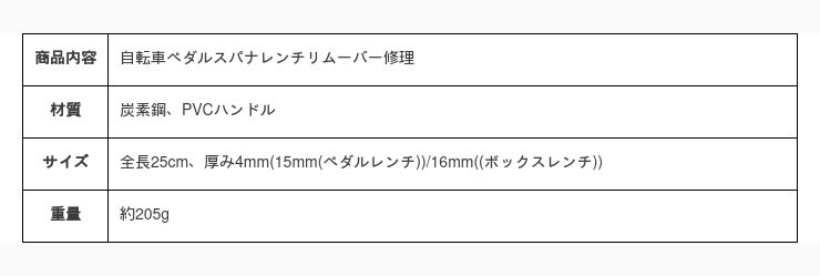 [使える機能]ペダルレンチ15mm/ボックスレンチ16mm