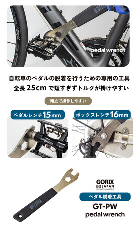 自転車パーツの開発・製造・販売を手掛ける、GORIX株式会社(所在地:大阪市東淀川区瑞光3-9-29、代表取締役:長野明)の自転車パーツブランド「GORIX」から新商品の「自転車ペダル脱着工具(GT-PW) 」が発売されました。