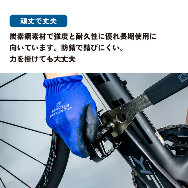 自転車のペダルの取り付け外しを行うための専用の工具です。固くなったペダルも専用工具のペダルレンチなら効率的にスムーズに作業を行えます。