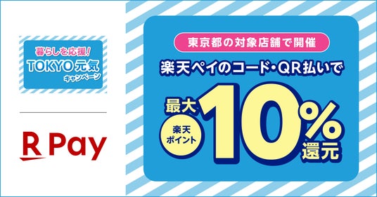 楽天ペイメント株式会社(以下「楽天ペイメント」)は、運営するキャッシュレス決済サービス「楽天ペイ」アプリにおいて、東京都が2024年3月11日(月)から3月31日(日)まで実施する「暮らしを応援!TOKYO元気キャンペーン」に参加することをお知らせします。また、併せて2024年3月1日(金)から4月1日(月)まで、楽天カード株式会社(以下「楽天カード」)と共同で「楽天カードまたは楽天キャッシュでのコード・QRコード払いで最大20%還元」キャンペーンも実施します。