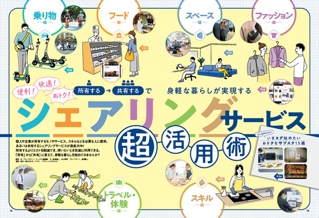 シェアリングの魅力は、所有するよりもコストを削減でき、使いたいとき気楽に利用できること。「所有」から「共有」に変えて、身軽な暮らしを始めてみませんか。シェアリングエコノミー協会の協力のもと、便利で快適でおトクな活用術をナビゲートします!