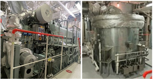 (船内のメタンスリップ削減システム左:EGR(註2)システム、右:メタン酸化触媒層)