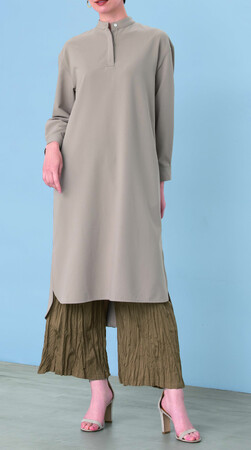 ボタン使いでシャツライクにも装うことができる、モード感のある1着です。