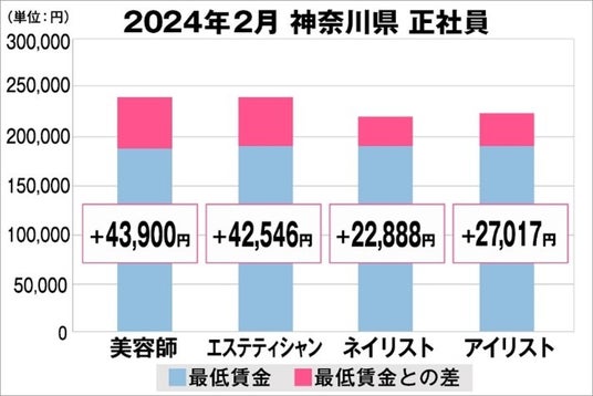 神奈川県の美容業界における採用時給料に関する調査結果(正社員)2024年2月美プロ調べ