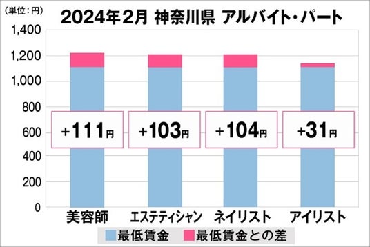 神奈川県の美容業界における採用時給料に関する調査結果(アルバイト・パート)2024年2月美プロ調べ