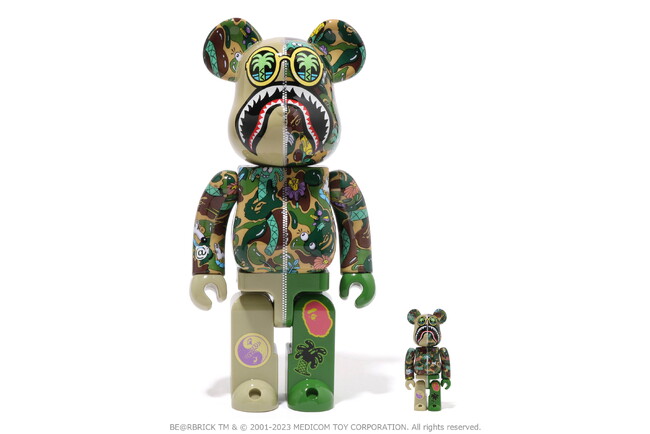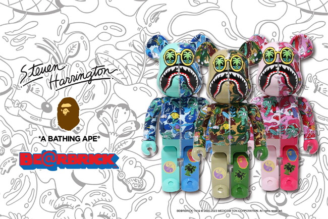 BAPE(R) x MEDICOM TOY x Steven Harrington BE@RBRICKは、A BATHING APE(R)正規取り扱い店舗およびBAPE.COM WEB STORE、MEDICOM TOYの店舗にて2023年6月17日(土)発売開始。
