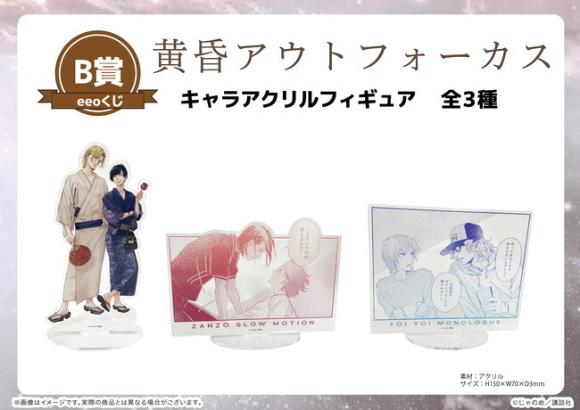 『黄昏アウトフォーカス』シリーズのオンラインくじ「eeoくじ」が7月24日までeeo Store(通販)にて発売中! 新規描き下ろし&公式イラストを使用した新作グッズが豪華景品として当たります。