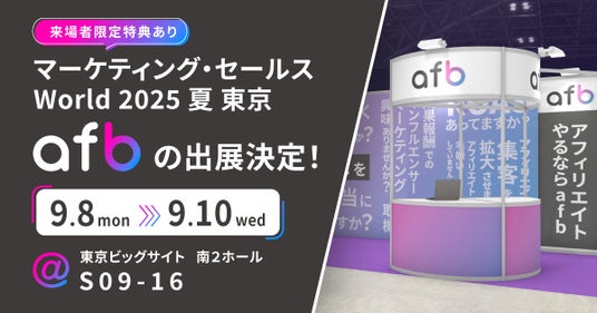 アフィリエイトプラットフォーム事業「afb(アフィビー)」の開発運用をおこなう株式会社フォーイットは、2025年9月8日(月)~9月10日(水) の3日間、東京ビッグサイトで開催される「マーケティング・セールス World 2025 夏 東京」に出展いたします。