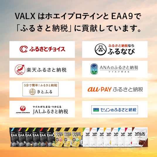 VALX及び、地域社会の発展を目指し納税返礼品として受付を実施していたVALXプロテインシリーズに加え、静岡県浜松市のふるさと納税返礼品として新たに「VALX EAA9」の受付を開始いたしました。