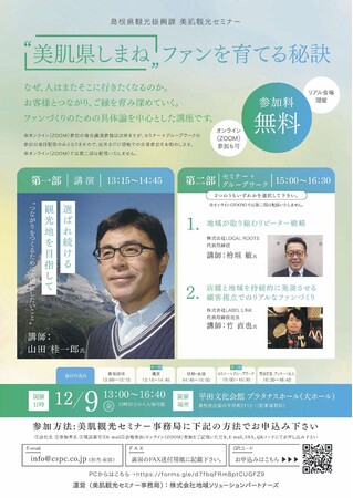 島根県は、12月9日(金)に、令和4年度美肌観光セミナー「“美肌県しまね”ファンを育てる秘訣」を開催します。