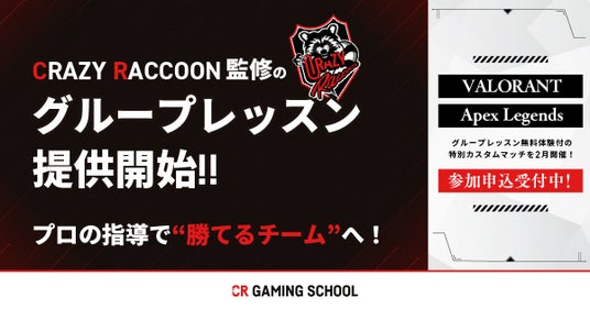 株式会社Game & Co.(本社:東京都港区、代表取締役:星 崇祥、読み:ゲームアンドコー、株式会社Brave group100%子会社、以下「Game & Co.」)は、日本最大級のプロゲーミングチーム「Crazy Raccoon」との共同事業として運営する、ゲームの上達に特化したオンラインスクール『CR Gaming School(以下、CRGS)』から、マンツーマンレッスンに加え、新サービス「グループレッスン」の提供を開始いたしました。