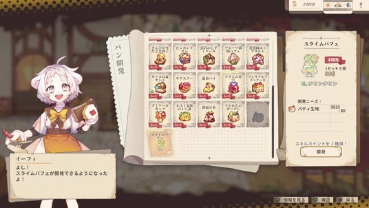 さらに、物語の途中にはランゲームやリズムゲームなどのミニゲーム要素もあり、正式リリースでは新システム「パティ牧場」を実装しました。生地のモンスター「パティ」を仲間にして育てることで、素材集めの冒険に出かけたり、パン屋の仕事を手伝ってもらったりできます。