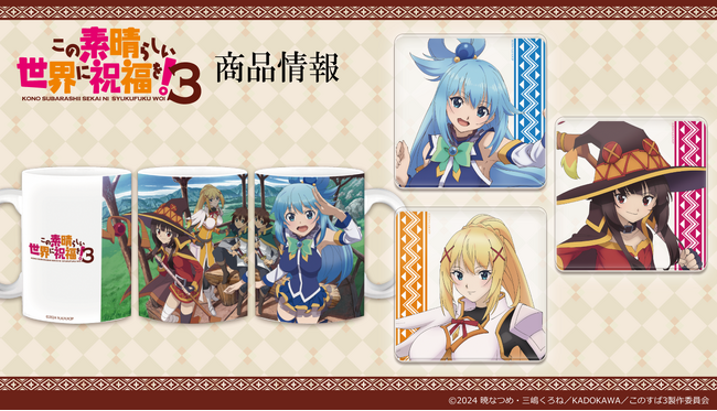 【きゃらON!TVアニメ「この素晴らしい世界に祝福を!3」商品ページ】https://www.charaon.jp/SHOP/130420/147420/list.html