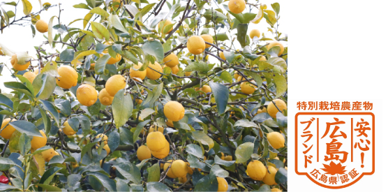 広島県認定の「特別栽培農産物」のマークがついているレモンが「せとだエコレモン」の証。非常に厳しい条件下でひとつひとつ大切に育てられた特別なレモンです。