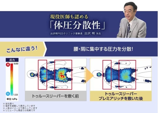 「トゥルースリーパー プレミアリッチ pr.2」の最大の特長は、体にかかる圧力を分散することにあります。