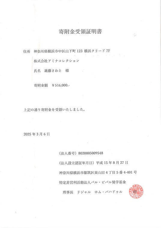 株式会社アミナコレクション(本社:神奈川県横浜市、代表取締役社長 進藤さわと)は、「WALK WITH THE SUN」の理念のもと、地域社会と共に歩み、文化を未来へつなぐCSR活動を推進しています。2024年度(48期)も、多岐にわたる社会貢献活動を実施しましたので、ご報告いたします。