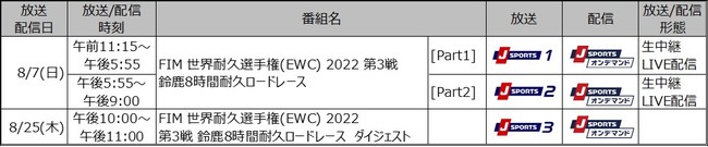 8月7日(日)は、「鈴鹿8時間耐久ロードレース」を含め、国内外のモータースポーツを圧倒的なボリュームでお届けするJ SPORTSにぜひご期待ください。