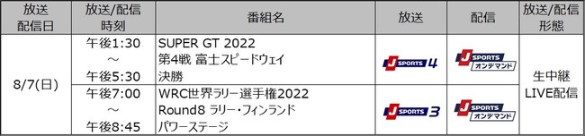 ■8月7日(日)SUPER GT、WRC世界ラリー選手権 放送/配信予定