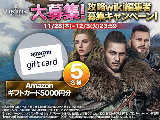 スマートフォン向けゲームアプリのグローバルメーカーIGG(会長兼CEO: Zongjian Cai 香港証券取引所上場 日本所在地:東京都新宿区)は、ヴァイキング戦略RPG『ヴァイキングライズ』の公式Xにて、『攻略wiki編集者募集キャンペーン』を開催いたします。