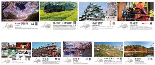 このタペストリーには中部地域を代表する観光地の美しい景色や、象徴的な文化を紹介した写真が掲載されており、日本語と英語で説明を読むことができます。