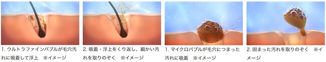 普段目にする通常の泡よりもずっと小さく、特異的な洗浄のメカニズムを持つウルトラファインバブルとマイクロバブル。2つの泡が皮脂汚れや残留しやすい剤まで洗い流し、まっさらな素髪へ。シャンプーワークの効果をさらに引き上げ、ふっくら立ち上がったやわらかな髪へ導きます。