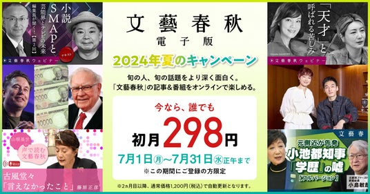 株式会社文藝春秋(本社:東京都千代田区 社長:飯窪成幸)が運営する『文藝春秋 電子版』は、2024年7月1日から31日正午までの1カ月間、夏のキャンペーンを開催いたします。