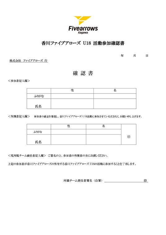 ▼香川ファイブアローズU18活動参加確認書