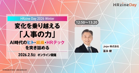 統合型人事システム「ジンジャー」を提供しているjinjer株式会社(本社:東京都新宿区 代表取締役社長CEO:冨永 健 以下、jinjer)は、2026年2月5日(木)に開催予定の株式会社翔泳社 HRzine編集部主催の「HRzine Day 2026 Winter」に、代表取締役社長 CEOの冨永が登壇することをお知らせします。
