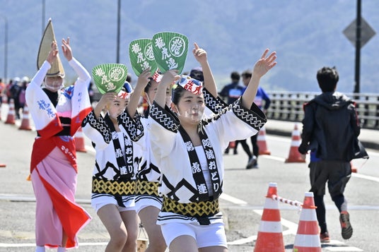 (写真)徳島といえばもちろん「阿波踊り」。夏の風物詩として有名な阿波踊りが、とくしまマラソンのために特別出演!