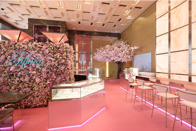 フェア期間中「ティファニー丸の内店」は、春の訪れを祝してピンク一色に