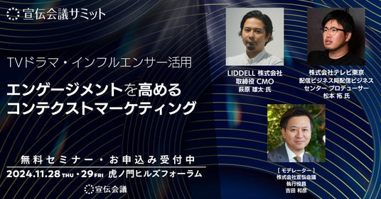 人を基軸としたマーケティング事業を展開するLIDDELL株式会社(本社:東京都港区、代表取締役:福田 晃一、以下リデル)は、株式会社宣伝会議主催のイベント「宣伝会議サミット in TOKYO」にて、無料セミナー『TVドラマ・インフルエンサー活用 エンゲージメントを高めるコンテクストマーケティング』に登壇します。本セミナーでは、リデルが提供する「感情的で面白い上でデータドリブンなインフルエンサー施策」や、ファン・コミュニティ運用によるロイヤル化の最新事例をお届けします。