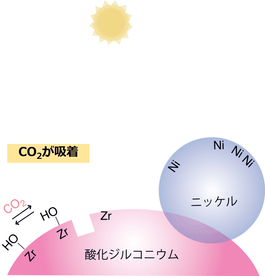 論文タイトル:Efficient and Selective Interplay Revealed: CO2 Reduction to CO over ZrO2 by Light with Further Reduction to Methane over Ni0 by Heat Converted from Light