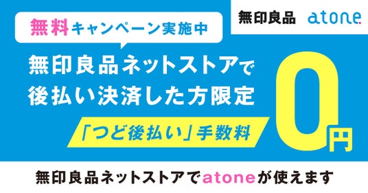 キャンペーン期間中、「無印良品ネットストア」で「atoneつど後払い」をご利用いただくと手数料190円(税込)を無料にいたします。