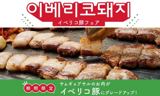 そんな人気のサムギョプサルを、もっと楽しんで召し上がっていただきたく、この度「イベリコ豚フェア」を開催!お値段そのままで、お肉がイベリコ豚にグレードアップします。