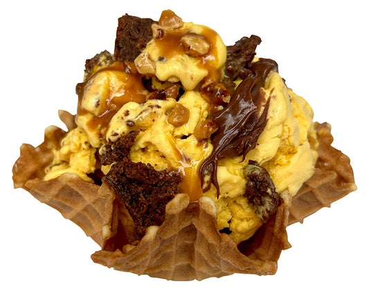 パンプキンアイスクリームと濃厚なブラウニー、キャラメルでコーティングしたアーモンド、ヌテラは相性抜群!この時期ならではの濃厚なアイスクリームに仕上げました。