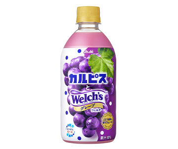 『カルピスとWelch’sグレープ』は、「Welch’s」ならではの濃厚なぶどうの味わいで、甘ずっぱいおいしさがいっそう引き立てられた「カルピス」です。乳酸菌とぶどう由来のポリフェノールを含む、おいしくてカラダにも嬉しいよくばりな乳性飲料です。