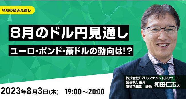 株式会社外為どっとコム(本社:東京都港区、代表取締役社長:竹内 淳)は、8月3日(木)19時より、当社主催の無料オンラインセミナー『8月のドル/円見通し ユーロ、ポンド、豪ドルの動向は!?』を開催することとなりましたので、お知らせいたします。