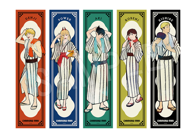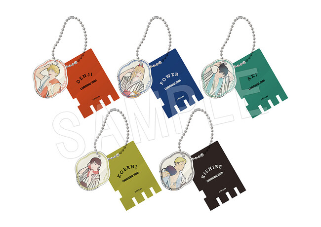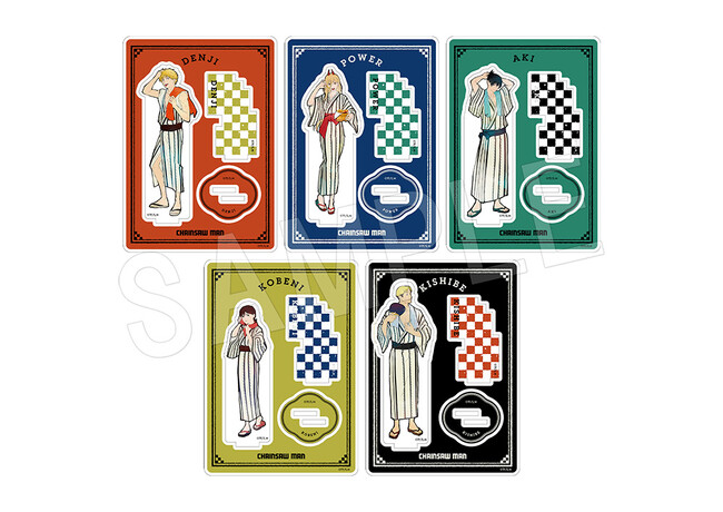 デンジたち5人の湯上り姿の新規描き下ろしイラストを使用した「アクリルスタンド」や「ブロマイド付きバスパウダー」などの新作グッズが多数登場!