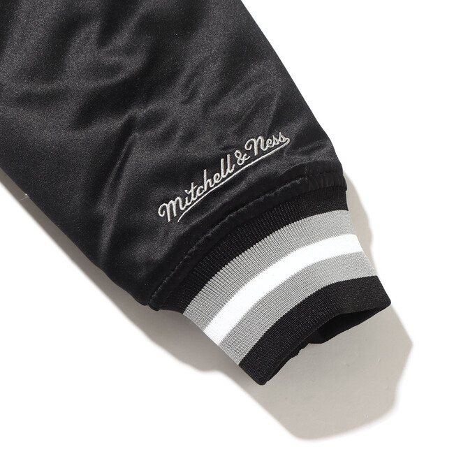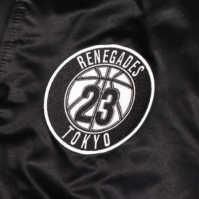 光沢を放ち高級感のあるサテン生地のボディに、背面と胸には大きく「RENEGADES」のロゴを、「Mitchell & Ness」と「TOKYO 23」のロゴを裾や袖口に刺繍で配しました。内側はキルティングで暖かい着心地を演出してくれるアイテムです。