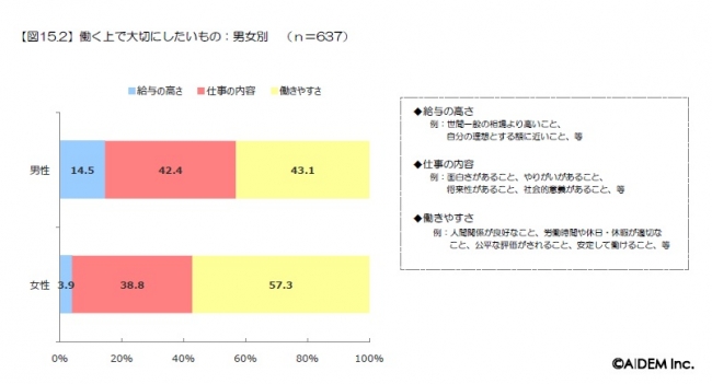 女性は「働きやすさ」重視で、男性とは15ポイント近い差も