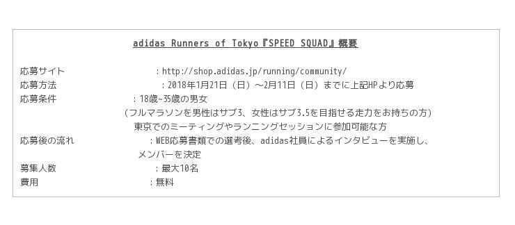 2018年1月21日(日)よりメンバー募集を開始 http://shop.adidas.jp/running/community/