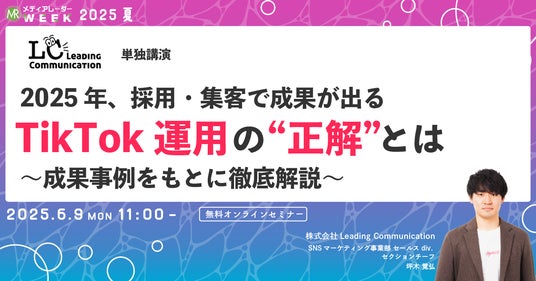 本セミナーでは、TikTokアカウント運用支援に強みを持つLeading Communicationが、2025年版・成果を出すTikTok運用の正解を大公開。